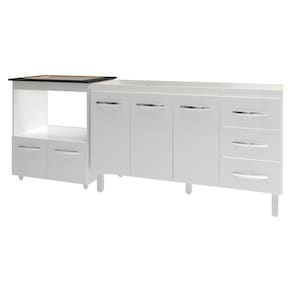 Características do Kit Montado: Largura Total: 213 cm (lado a lado dos dois balcões) Profundidade: 50 cm Altura Total: 85,5 cm (com o tampo do balcão para cooktop)