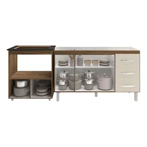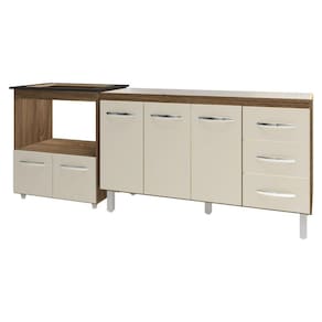 Características do Kit Montado: Largura Total: 213 cm (lado a lado dos dois balcões) Profundidade: 50 cm Altura Total: 85,5 cm (com o tampo do balcão para cooktop)