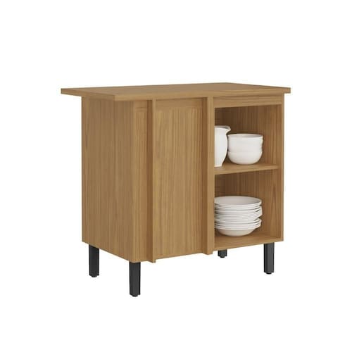Organização: Suas dimensões ideais permitem a organização eficiente de utensílios e mantimentos, com estrutura reforçada para suportar cargas pesadas.Versatilidade: Possui tampo em MDF impermeabilizado, permitindo recortes para instalação de cooktop ou uso como espaço adicional na ência: Puxadores em ABS resistentes, pés injetados de polipropileno e acabamento especial que suporta altas temperaturas.Estabilidade: Sapatas reguláveis garantem estabilidade e nivelamento do produto no Design leve e anatômico, que combina resistência e conforto ao abrir as portas.