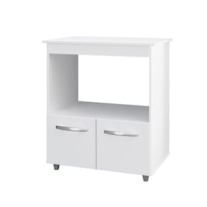 Características: Estrutura em MDP Acabamento em pintura UV 02 Portas com Dobradiças Metálicas Puxadores em Plástico Cromados Pés Fixos Amplo Espaço Interno para Organizar Utensílios Espaço para Forno ou Microondas