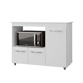 Características: Estrutura em MDP Acabamento em pintura UV 03 Portas com Dobradiças Metálicas Puxadores em Plástico Cromados Pés Fixos Amplo Espaço Interno para Organizar Utensílios Nicho para Forno ou Microondas
