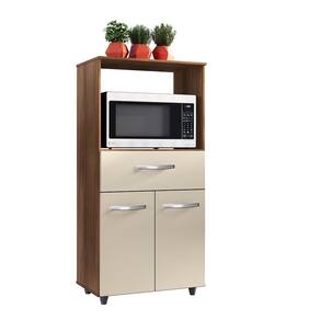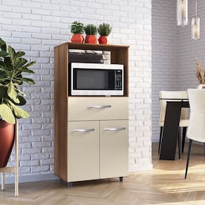 Características: Estrutura em MDP Acabamento em pintura UV 02 Portas com Dobradiças Metálicas 01 Gaveta com Corrediças Metálicas Puxadores em Plástico Cromados Pés Fixos Altura dos Pés 5cm Amplo Espaço Interno para Organizar Utensílios Nicho para Forno ou Microondas
