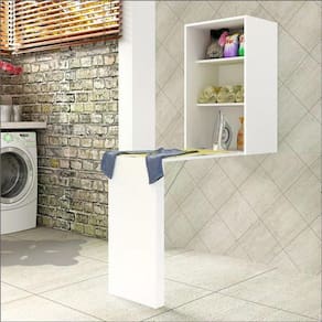 Armário Bancada Retrátil, perfeita pra otimizar e organizar o seu espaço, estrutura em MDP de 15mm, pintura com acabamento em Uv (Brilho). Tampo retrátil basculante com dobratiças metálicas e articulador com trava, 03 nichos interno ideias para guardar seus itens de serviço, bancada aberta suporta até 10 kg, o produto montado deverá ser fixado na parede, incrivel designer multifuncional você pode usar em sua área de serviço para passar roupas e organizar seus itens, ou pode usar na cozinha como bancada ou até mesmo em seu quarto como mesa para trabalhar ou estudar, matenha seu ambiente organizado com esse móvel super moderno e compacto. Este móvel chegará em sua casa separado em 01 volume.
