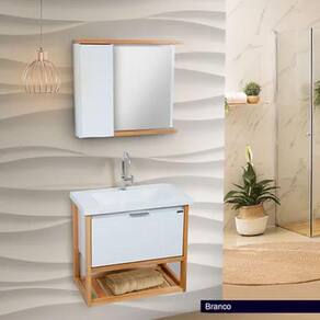Armario Banheiro 58cm Deck - Branco - Fimap Características Produto em MDF 15mm Estrutura e Tampo em Madeira de Reflorestamento (Eucalipto) Pintura Madeira - PUPintura MDF - UV Dobradiça Slow Motion (Portas com Amortecedores) Puxador em Alumínio