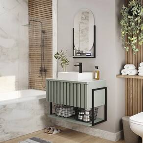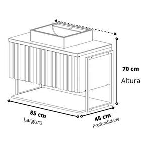CARACTERÍSTICAS: - Gabinete suspenso para Banheiro com Cuba desenvolvido em MDF - Acabamento em pintura BP. - Cuba em mármore sintético. - Amplo espaço interno - Porta com pistão à gás - Puxadores de alumínio.