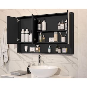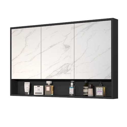 Armário Banheiro 90cm 3 Portas Com Espelho Hefesto Preto Descrição