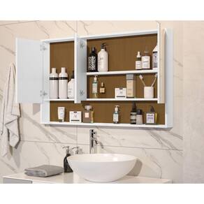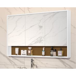 Armário Banheiro 90Cm 3 Portas Espelho Hefest Branco Nature