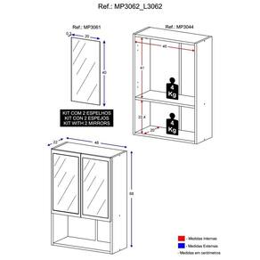 Altura: 68cm | Largura: 48cm | Profundidade: 22cm