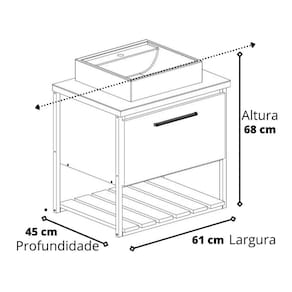 MEDIDAS ARMÁRIO: - Altura: 68 cm - Largura: 60 cm - Profundidade: 45 cm - Peso: 23,4 kg