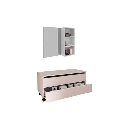 Conjunto de Banheiro Balcão c/ Rodizios BN3603 s/ Cuba 80cm e Armário c/ Espelho BN3609 Branco - Tecno Mobili Abaixo segue os produtos do KIT: Conjunto de Banheiro Balcão c/ Rodizios BN3603 s/ Cuba 80cm e Armário c/ Espelho BN3609 Branco - Tecno Mobili Gabinete de Banheiro c/ Rodízio BN3603 s/ Cuba c/ 2 Gavetas 80cm Branco - Tecno Mobili