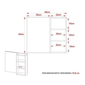 Dimensões(Cm): Comprimento(Profundidade): 15,6cm x Largura: 60cm x Altura: 54cm Material de Estrutura - Estrutura 100% MDP Tipo de Pintura - Pintura em UV (Ultravioleta) Tipo de Acabamento da Pintura - Pintura Semi Brilho Quantidade de nichos - 3 Nichos Garantia - Garantia de 90 dias Certificação de Qualidade - Qualidade Aprovada