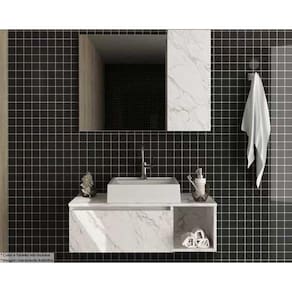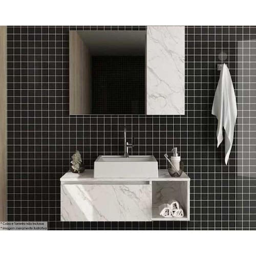 Gabinete de Banheiro Suspenso BN3601 s/ Cuba c/ 1 Porta 80cm Mármore Branco - Tecno Mobili