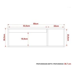 Dimensões(Cm): Comprimento(Profundidade): 38,7cm x Largura: 80cm x Altura: 26,5cm Material de Estrutura - Estrutura 100% MDP Tipo de Pintura - Pintura em UV (Ultravioleta) Tipo de Acabamento da Pintura - Pintura Semi Brilho Quantidade de Portas - 1 Porta de Abrir Tipo de Dobradiças - Dobradiças Metálicas Quantidade de nichos - 1 Nicho Garantia - Garantia de 90 dias Certificação de Qualidade - Qualidade Aprovada