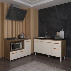 Armário Camila Cozinha Gabinete De Pia 140 Cm E Balcão Para Cooktop 4 Bocas E Forno Ou Microondas Alana Savana Off White Transforme sua cozinha com o Kit Balcão para Pia 140 cm Camila e Balcão para Cooktop Alana 4 Bocas e Forno Elétrico. Fabricado com materiais de alta qualidade, possui pintura UV resistente e um acabamento impecável, unindo elegância e praticidade. Ideal para quem busca estilo e funcionalidade em um único conjunto. Deixe sua cozinha mais bonita e organizada com esse kit completo! Características do Balcão de Pia Camila 138 cm: Altura com pés: 83,5 cm Altura sem pés: 67 cm Largura: 138 cm (Padrão para pia de 140 cm) Profundidade: 50 cm Material: MDP (Madeira de Média Densidade) Portas: 4 portas Gavetas: 1 gaveta Prateleiras: 1 prateleira Puxadores: 6 puxadores plásticos s Pés: 6 pés reguláveis de plástico Altura dos pés: 16,5 cm Regulagem dos pés: Somente para nivelamento (chega no máximo a 18 cm) Corrediças: Metálicas Indicação de uso: Cozinha Acompanha tampo: Não