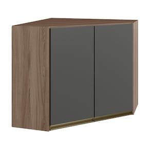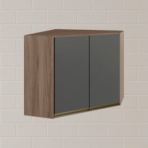 Armário Aéreo Canto Oblíquo para cozinha desenvolvido para composições modernas e funcionais. Fabricado 100% em MDF, com estrutura de 15 mm e forro de fundo de 3 mm. Além disso conta com 2 portas com dobradiças de 35mm com amortecedor, que garantem fechamento suave e silencioso e 1 prateleira. Os puxadores em perfil de alumínio completam o produto com um visual funcional e moderno. Este móvel chegará em sua casa separado em 02 volumes.