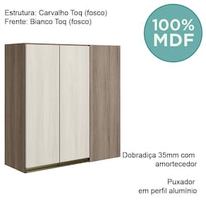 Armario Canto Reto 2P MDF 86cm Kali 12043 Carvalho Toq Bianco Toq Nicioli - Marrom