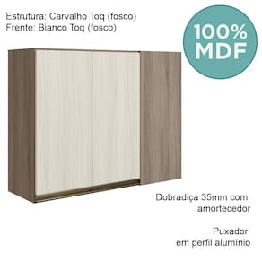 Armário Aéreo Canto Reto para cozinha desenvolvido para composições modernas e funcionais. Fabricado 100% em MDF, com estrutura de 15 mm e forro de fundo de 3 mm. Além disso conta com 2 portas com dobradiças de 35mm com amortecedor, que garantem fechamento suave e silencioso e 1 prateleira. Os puxadores em perfil de alumínio completam o produto com um visual funcional e moderno. Este móvel chegará em sua casa separado em 02 volumes.