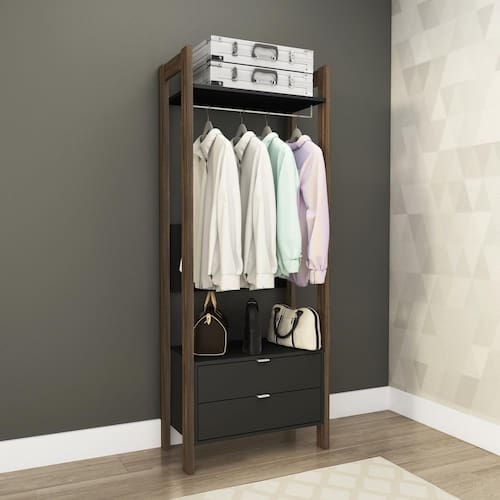 Armário Closet Com 2 Gavetas Multimóveis Cr35001 Preto/nogal