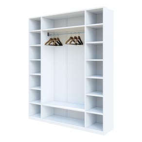 O Armário Colmeia com Cabideiro + Prateleiras + Nichos/ Expositor da Klithovit Decor, é a solução ideal para quem deseja otimizar o espaço de armazenamento em closets ou lojas de roupas. Com um design funcional e elegante, ele combina prateleiras, nichos e um cabideiro, oferecendo praticidade e estilo. Com 14 nichos laterais, 2 nichos centrais e 1 cabideiro, o armário permite uma organização eficiente de roupas, acessórios e itens decorativos, adaptando-se a diferentes ambientes. Dimensões: Altura: 1,85 m Largura: 1,50 m Profundidade: 35 cm Cabideiro: 87 cm de comprimento x 1,20 m de altura Nichos Laterais: 24 cm x 28 cm x 35 cm (AxLxP) Nichos Centrais: 24 cm x 88 cm x 35 cm (AxLxP) Material: Confeccionado em MDF de 15 mm, o armário apresenta um acabamento de alta qualidade, garantindo durabilidade e resistência ao uso diário. Montagem: O produto é enviado desmontado e inclui um manual de montagem detalhado, com todas as instruções e ferragens necessárias para facilitar a montagem. Limpeza: Para manter seu armário sempre limpo e em bom estado, utilize um pano macio e levemente umedecido com água. Evite produtos abrasivos que possam danificar o acabamento. Atenção: Itens decorativos não inclusos, transforme seu espaço com o Armário Colmeia, unindo organização e estilo de forma prática! A montagem é de responsabilidade do comprador. Boas Compras! Klithovit Decor Marca: KLITHOVIT DECOR