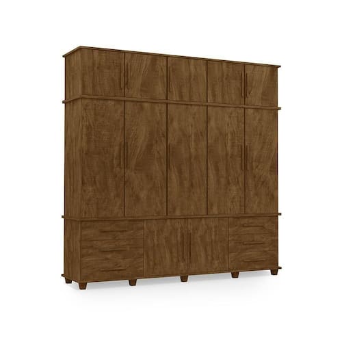 Esse Armário conta com um design clássico e simples, somando na decoração de seu quarto ou closet, com o espaço amplo para você se organizar. Ele conta 5 portas maiores, 6 gavetas, 2 prateleiras internas, varal para cabides, armário inferior com 2 portas e armário superior com 5 portas.