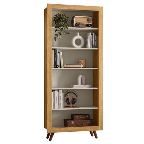 Feito em MDP 15mm, possui seis prateleiras móveis, pés com design retrô .