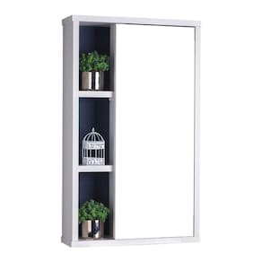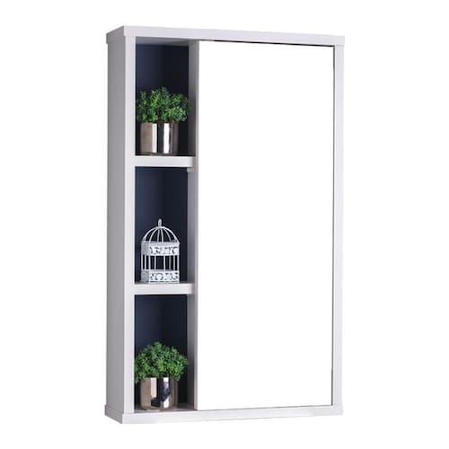 Suas medidas totais são: 70cm de Altura x 42cm de Largura x 13cm de Profundidade. Nichos Internos: 20cm de Altura x 22,5cm de Largura x 13cm de Profundidade. Nichos Externos: 20cm de Altura x 14cm de Largura x 13cm de Profundidade. O espelho mede: 66cm de Altura x 26cm de Largura. Peso: 8,5kg.