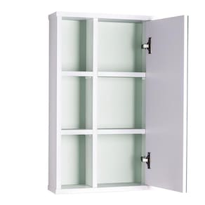 Suas medidas totais são: 70cm de Altura x 42cm de Largura x 13cm de Profundidade. Nichos Internos: 20cm de Altura x 22,5cm de Largura x 13cm de Profundidade. Nichos Externos: 20cm de Altura x 14cm de Largura x 13cm de Profundidade. O espelho mede: 66cm de Altura x 26cm de Largura. Peso: 8,5kg.