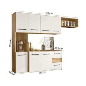 Marca: Nicioli; Linha: Cozinha; Modelo: Juliete; Altura: 136 cm; Largura: 180 cm; Profundidade: 33,5 cm; Material da estrutura: MDP de 12 mm (estrutura) e MDP de 15 mm (portas); Acabamento: Pintura; Quantidade de portas: 07; Material de dobradiças: Metálicas; Quantidade de gavetas: 02; Material das corrediças: Metálicas; Com puxador: Sim; Material do puxador: Plástico; Quantidade prateleiras: 01; Pés com regulagem: Não; Peso suportado: 45 kg distruibuídos; Requer montagem: Sim (kit montagem incluso); Condição do item: Novo; É kit: Não; Altura da embalagem: 8,6 cm; Largura da embalagem: 61,3 cm; Comprimento da embalagem: 137,4 cm; Peso: 43,3 kg; Embalagem do envio: Papelão e plástico; Informações adicionais: - Os objetos que ambientam as fotos não acompanham o produto; - O produto será entregue desmontado; - É de inteira responsabilidade do cliente a montagem do produto e/ou instalação, custos de transporte por escadas e/ou elevadores, guincho ou içamento, assim como possíveis irregularidades provenientes de manuseio inadequado; - Embora o produto acompanhe o manual de montagem, verifique a complexidade antes de decidir montá-lo sozinho, recomendamos que contrate um profissional de sua confiança; - Fique atento, nossas cores podem sofrer alterações dependendo do seu monitor; - ANTES DE MONTAR O SEU PRODUTO, certifique-se que todas as instruções dispostas no manual, bem como todas as ferragens descritas, estejam presentes dentro da embalagem. Verifique se há alguma peça danificada, caso esteja, prestaremos a devida assistência dentro do prazo da garantia.