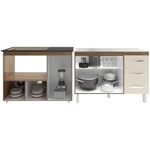 Características do Kit Montado: Largura Total: 232 cm (lado a lado dos dois balcões) Profundidade: 50 cm Altura Total: 85,5 cm (com tampo do balcão para cooktop)