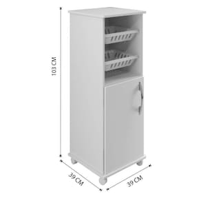 A Fruteira Paraná é prática e versátil, pois tem um design compacto e multifuncional. Conta com 02 cestos de plásticos removíveis para você colocar as frutas e legumes. Os pés são em rodízios possibilitando mover para todos os lugares. Possui uma porta e uma prateleira o que faz da organização de objetos, condimentos e utensílios muito mais prática. Altura: 103 cm Largura: 39 cm Profundidade: 39 cm Garantia: 3 Meses Material da estrutura: MDP/MDF Acabamento: Pintura U.V Número de Portas: 01 Número de Prateleiras: 01 Número de Gavetas: N/I Número de Cestos: 02 Possui vidro: Não Possui rodízio: Sim Necessita de montagem? Sim, sugerimos a contratação de algum profissional experiente de sua preferência Recomendações de limpeza e manutenção: Limpar com pano umedecido, não aplicar produtos químicos. Atenção: Disponibilidade é o prazo para o produto encomendado estar disponível para a transportadora; A transportadora se isenta de efetuar a entrega com subida de escada ou içar produtos; Pode existir diferença de tonalidade entre a foto e o produto devido ao tratamento da imagem e à calibração de cores do monitor; Não oferecemos serviço de montagem - quando necessário o produto acompanha manual; Itens que decoram o ambiente nas imagens não acompanham o produto.