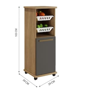 Armário Cozinha Com Fruteira Paraná 1 Porta 1 Prateleira 2 Cestos Arte Móveis Cinamomo/grafite A Fruteira Paraná é prática e versátil, pois tem um design compacto e multifuncional. Conta com 02 cestos de plásticos removíveis para você colocar as frutas e legumes. Os pés são em rodízios possibilitando mover para todos os lugares. Possui uma porta e uma prateleira o que faz da organização de objetos, condimentos e utensílios muito mais prática. Altura: 104 cm Largura: 39 cm Profundidade: 39 cm Garantia: 3 Meses Material da estrutura: MDP/MDF Acabamento: Pintura de Portas: 01 de Prateleiras: 01 de Gavetas: N/I de Cestos: 02 Possui vidro: Não Possui rodízio: Sim Observações: - Todos os produtos têm três (03) meses de garantia fornecida pelo fornecedor - As imagens são meramente ilustrativas, os objetos que ambientam as fotos não acompanham o produto. - Pode haver alguma diferença de tonalidade entre a foto e o produto, devido ao tratamento de imagens e a calibração do monitor - Em caso de divergências de informações, o preço válido será o informado no carrinho de compras - A é realizada por transportadora, não nos responsabilizamos, no ato da por desmontagens, subir escadas/elevadores ou por guincho para apartamentos - Eventuais despesas são de responsabilidade do cliente - Confira as dimensões dos volumes e certifique-se de que passará normalmente por supostos elevadores, portas, escadas ou corredores - Ao receber a mercadoria, verifique as condições da embalagem, caso haja alguma , com nosso - Nossa empresa não se responsabiliza pela montagem dos produtos, mas todos os produtos possuem manual de montagem. Recomendamos que a montagem seja feita por de sua confiança. Ean: 7898663318135