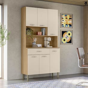 O Armário Apolo une funcionalidade e estilo para quem busca otimizar espaços com elegância. Produzido em MDP resistente, possui 6 portas e 1 gaveta ampla, ideais para organizar utensílios e mantimentos. Seu visual moderno combina com qualquer cozinha, agregando praticidade e sofisticação.