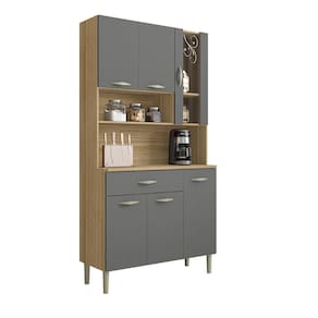 Armário Cozinha Compacta Golden com 6 Portas e 1 Gaveta em MDP Freijó/Gris - Kits Paraná