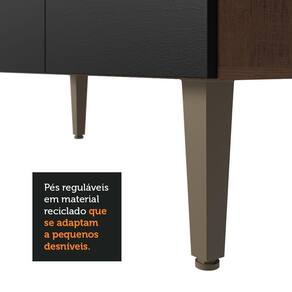 Materiais de alta qualidade: possui corrediças e dobradiças metálicas, puxadores no estilo ponto com textura e pés reguláveis em material reciclado.