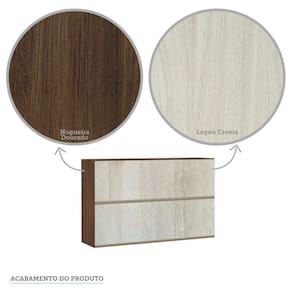Características Corpo/Caixaria: MDP - Nogueira Dourado - FF. Frontais: MDP - Acabamentos em BP. Dobradiças: 35mm Slow motion. Puxadores: Alumínio Gola - Inox. Porta: 2 Prateleira: 1 Pistão a gás de 50N. Montagem com Minifix, Parafusos e cavilhas.