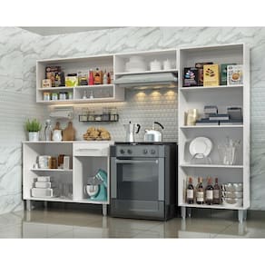 9 Portas de Correr com dobradiças metálicas; 8 Prateleiras com distribuição inteligente; 1 Gaveta com Corrediças Metálicas; Puxadores modernos em PVC; Fabricado em MDP 12mm; Acabamento Touch Alto-Relevo ou Alto Brilho UV (nas cores Branco e Off-white) e Semibrilho parte interna; Design compacto e funcional, atendendo à casas e apartamentos; Balcão avulso, que pode ser colocado em diferentes posições para se adaptar melhor ao seu ambiente; Fácil montagem
