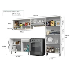 Balcão: Altura: 0,69m x Largura: 0,91m x Profundidade: 0,36m x Peso 21kg