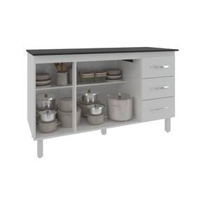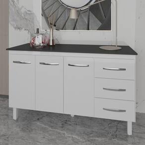 Armário Cozinha Gabinete De Pia 160 Cm Estela Branco E Tampo Tampão 160 Cm Mobília Decor Preto
