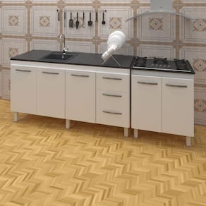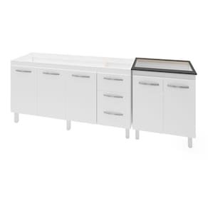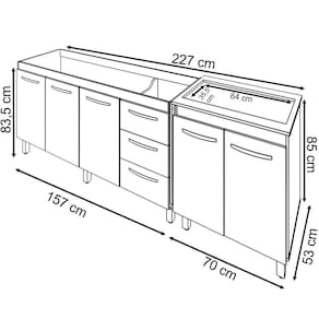 Características do kit montado: Largura 227 cm (lado a lado os dois balcões). Profundidade 53 cm (Profundidade do balcão para cooktop com tampo, sem tampo os balcões possuem 50 cm de profundidade.) Altura: 85 cm (Altura do balcão para cooktop com tampo, sem tampo os balcões possuem 83,5 cm de altura.) *Os Móveis não são acoplados, são montados individualmente e podem ser utilizados em locais diferentes. *Imagem meramente ilustrativa, não acompanha objetos decorativos, é somente os dois balcões. Marca: Não Informado