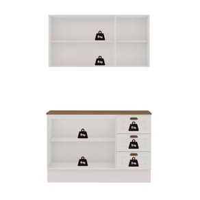 Imagina chegar na sua cozinha e ter tudo no lugar, com um visual leve e super aconchegante. Esse conjunto é completo: o balcão tem 2 portas espaçosas e 3 gavetas práticas, perfeitas pra organizar talheres, panelas e acessórios do dia a dia, enquanto o armário aéreo de 3 portas ajuda a manter pratos, copos e mantimentos sempre à mão, sem bagunça. O acabamento branco traz aquela sensação de limpeza e amplitude, deixando o ambiente mais iluminado, e os puxadores tom champanhe dão um charme especial. Além de lindo, é um móvel resistente, feito em 100% MDF, garantindo qualidade e sustentabilidade. Ah, e vale destacar: o kit acompanha tampo no padrão amadeirado Ébano, fácil de limpar e perfeito para o dia a dia. Uma solução perfeita pra quem busca praticidade e quer deixar a cozinha com muito mais charme e personalidade!