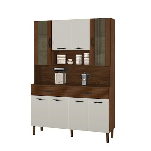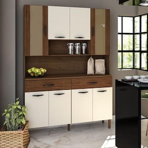 Quantidade de portas: 08, sendo 2 portas com detalhe em vidro;