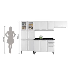 A Cozinha Completa Tarsila da Itatiaia traz qualidade e praticidade para o seu dia a dia. Seu amplo espaço interno é ideal para organizar louças, utensílios e panelas da maneira que desejar! Composta por um paneleiro com portas de vidro, armário triplo, armário de geladeira e um balcão triplo com tampo que se torna uma excelente bancada para acomodar seus utensílios de cozinha. Com muita funcionalidade, e trazendo um design mais sofisticado para sua cozinha. MEDIDAS: [ A ] = 195 cm [ L ] = 200,7 cm [ P ] = 50 cm MODELO: Armário Cozinha Completa Tarsila 13 Portas 2 Gavetas MARCA: Itatiaia COR: Branco PÉS: 8 MATERIAL DOS PÉS: Plástico regulável CORREDIÇAS: Telescópicas ESTRUTURA: Aço PORTAS: 13 GAVETAS: 2 PRATELEIRAS: 11 ITENS INCLUSOS: 1 Paneleiro com vidro, 1 Armário Triplo, 1 Balcão de 1,20m e 1 armário de geladeira. PESO: 78,59kg RECOMENDAÇÕES DE LIMPEZA: Limpeza com pano umedecido NECESSITA MONTAGEM: Sim SISTEMA DE MONTAGEM: Parafusos GARANTIA: 12 meses pelo fabricante A Montagem não inclusa. Entregamos até a porta de entrada da casa do cliente ou até a portaria do condomínio MEDIDAS: [ A ] = 195 cm [ L ] = 200,7 cm [ P ] = 50 cm | MODELO: Armário Cozinha Completa Tarsila 13 Portas 2 Gavetas | MARCA: Itatiaia | COR: Branco | PÉS: 8 | MATERIAL DOS PÉS: Plástico regulável | CORREDIÇAS: Telescópicas | ESTRUTURA: Aço | PORTAS: 13 | GAVETAS: 2 | PRATELEIRAS: 11 | ITENS INCLUSOS: 1 Paneleiro com vidro, 1 Armário Triplo, 1 Balcão de 1,20m e 1 armário de geladeira. | PESO: 78,59kg | RECOMENDAÇÕES DE LIMPEZA: Limpeza com pano umedecido | NECESSITA MONTAGEM: Sim | SISTEMA DE MONTAGEM: Parafusos | GARANTIA: 12 meses pelo fabricante | OBSERVAÇÃO: A Montagem não inclusa. Entregamos até a porta de entrada da casa do cliente ou até a portaria do condomínio Cor: Branco