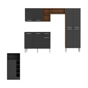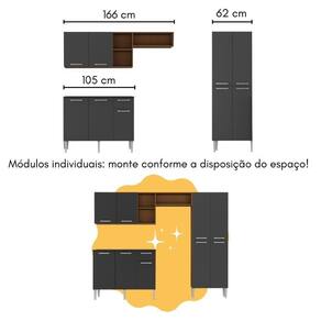 Armário De Cozinha Com Mesa Gourmet Pequim Multimóveis Mp2205 Carvalho Avelã/preto Carvalho Avelã/preto Com o Armário de Cozinha com Mesa Gourmet Pequim Multimóveis MP2205, você pode transformar sua cozinha num espaço completo e estiloso. Produzido em MDP com acabamento acetinado (cerca de 20% de brilho), este conjunto oferece durabilidade e um visual sofisticado. Com 9 portas, 1 gaveta com corrediças metálicas (mais leveza no manuseio), compartimento especial para utensílios mais altos e módulo aéreo com nichos, você terá um amplo espaço para acomodar todos os itens de forma organizada. Os módulos da cozinha são individuais (exceto o nicho para fogão/geladeira que é anexo ao armário aéreo), adaptando-se perfeitamente ao seu espaço. Os pés em polipropileno com regulagem de altura garantem estabilidade, enquanto os puxadores em ABS com acabamento cromado adicionam um toque de elegância ao móvel. Os tampos de 15mm do balcão (suporta até 15kg) e da bancada (suporta até 20kg) são resistentes, sendo que o tampo do balcão é removível (compatível apenas com pia sob medida). A bancada inclusa conta com 1 porta, prateleira interna e adega embutida, oferecendo funcionalidade adicional e a possibilidade de utilizá-la como divisora de ambientes. Conteúdo da Embalagem: 1 (um) Armário Aéreo com Nichos 166cm 1 (um) Paneleiro Duplo 62cm 1 (um) Balcão com Tampo 105cm 1 (uma) Bancada/Mesa Manual de Montagem Kit Ferragem