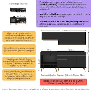 - Nicho para forno ou micro-ondas de até 18kg, com espaço para passagem de fios (não compatível com forno de embutir).