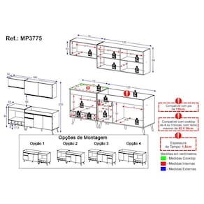 - Tampo em MDP 15mm com pintura de alta resistência, compatível com Cooktop de 4 ou 5 bocas. O recorte do tampo deve ser feito no momento da montagem, conforme o tamanho do seu Cooktop (tamanho máximo do nicho: 62 x 36cm).