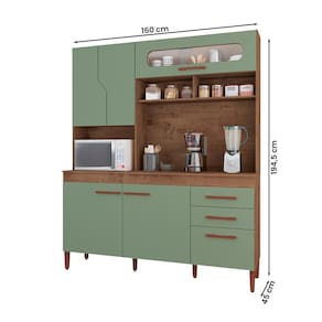 Armario Cozinha Monaco New com 5 Portas e 3 Gavetas - Verde