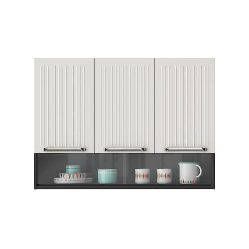 Armário Cozinhas Itatiaia Midi Pop Art i3 - 3 Portas c/ nicho - Grafite/Branco