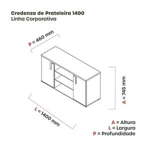Armário Credenza 02 Portas Pivotante Credc1400 Noce Naturalle/Preto - Marrom