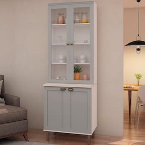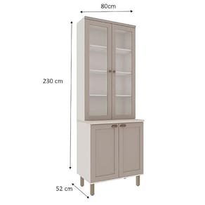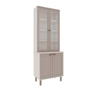 - Parte superior com 4 prateleiras internas (atrás das portas de vidro)
