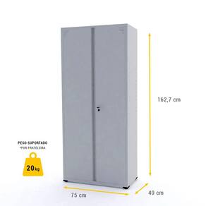 - Armário de aço com 2 portas, confeccionado em chapa de aço 26 (0,45 mm) e prateleiras em chapa de aço 24 (0,60 mm).